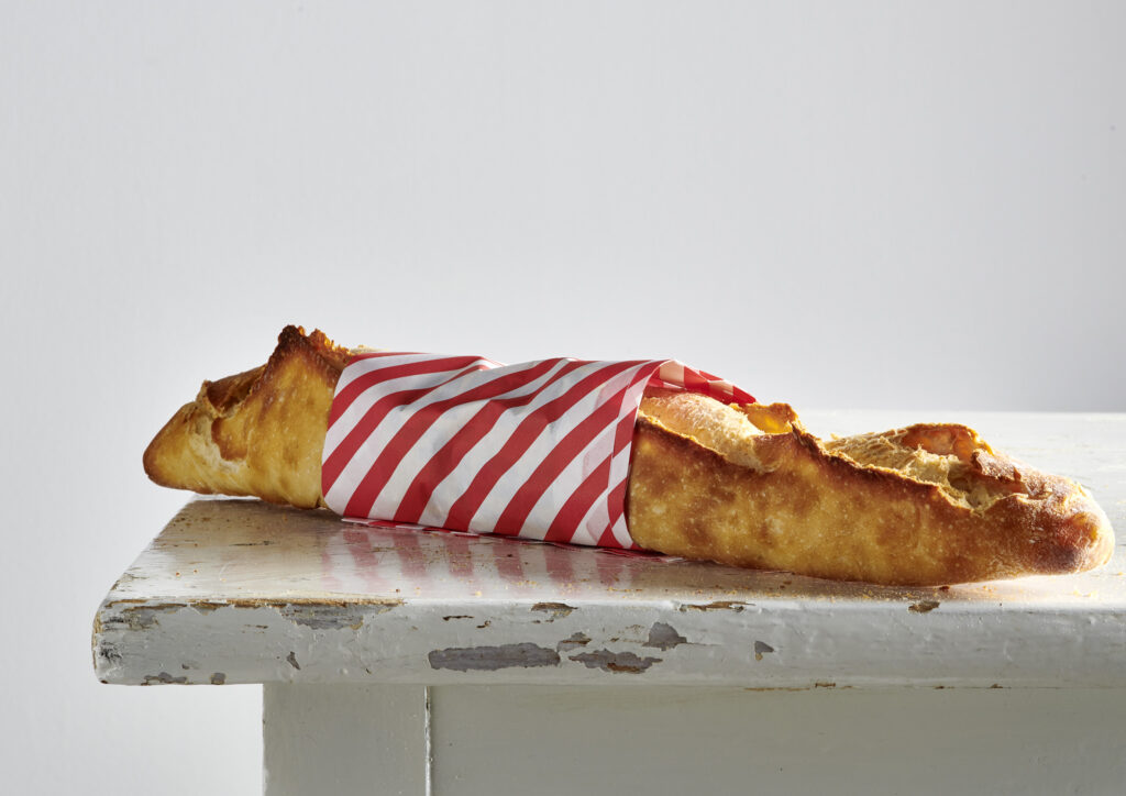 1 Helles Baguette mit Tomaten, Mozzarella, Pesto und Rucola